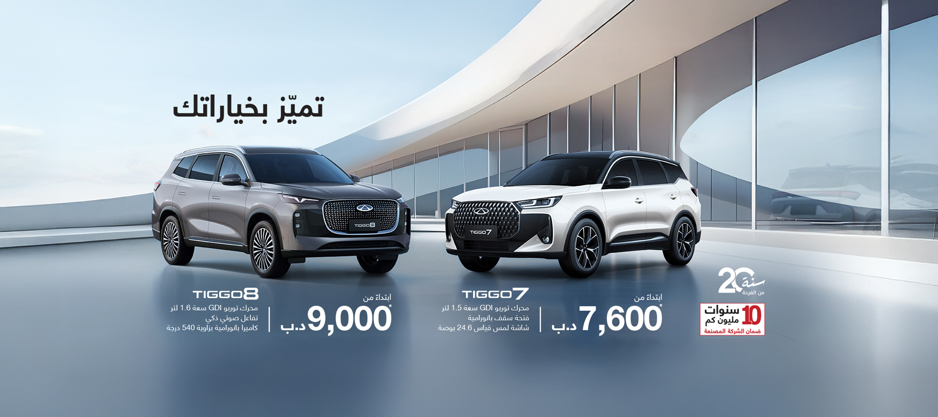 أما شيري تيجو 7 فتجمع بين الراحة والتكنولوجيا، بتصميم داخلي عصري، ومحرّك تيربو سعة 1.5 لتر GDI، وسقف بانورامي، وشاشة ذكية مقاس 24.6 بوصة.